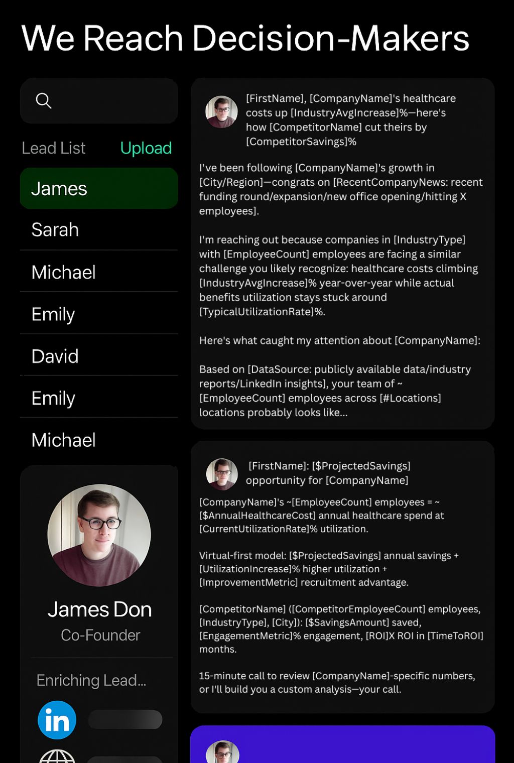 We don't lead with your platform's "features" - we lead with the business outcomes your prospects are measured on. Relevance drives replies.